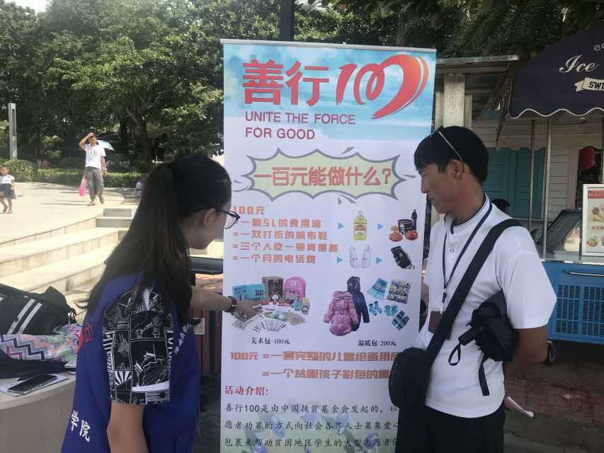 善行一百是中国扶贫基金会面向全国高校老员工发起的一项志愿者活动,致力于为老员工提供一个发展自身、同时献身公益的平台。这项活动是通过爱心募捐的方式,凝聚社会力量,为贫困地区小员工募集含有文具、书包等物品的包裹,把关爱带给贫困山区的孩子们。