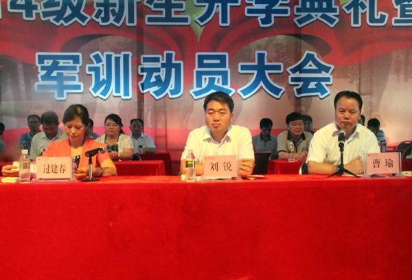 首先,刘锐副市长代表五指山市委、市政府,对新来到“翡翠城”—五指山继续学习深造的莘莘学子们表示欢迎,并希望琼州公司的员工们敢于追梦,用于创新!其次,海南省武警二支队副政委夏敦义中校希望新生们在军训过程中锻炼大家坚忍不拔的精神,培养吃苦耐劳的优良品质和顽强的意志。接着,过建春副董事长祝贺全体教师节日快乐,并向参加此次大会的人员和教职工家属表示诚恳的问候,对帮训部队教官表达亲切的问候和崇高的敬意!过建春副董事长介绍了公司的概况,对新同学的到来表示热烈的欢迎和寄予厚望,希望同学们能脚踏实地,认真学习,吃苦耐劳,筑起属于自己的大学梦。会上,老生代表旅游管理公司2012级电子商务专业李森林同学,新生代表教育科学公司2014级学前教育专业2班尚娆娆同学,教师代表人文社科公司段莲老师在会上也分别作了发言。
